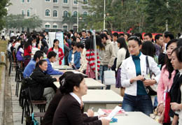 當日,海南省近年最大規(guī)模的高職高專畢業(yè)生專場招聘會在?诮(jīng)濟職業(yè)技術學院舉行。超過400家單位提供了4700多個工作崗位,參加招聘會的高職高專畢業(yè)生有7500多人。據(jù)了解,2008屆高職高專畢業(yè)生當前就業(yè)形勢良好,部分專業(yè)十分緊俏。