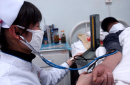 1月9日,患者王永康正在蘭州大學(xué)第一醫(yī)院濟(jì)困病床上接受護(hù)士的檢查。 據(jù)甘肅省衛(wèi)生廳最新統(tǒng)計(jì),目前甘肅全省14個(gè)市、州總計(jì)設(shè)置濟(jì)困病床3808張,累計(jì)收治病人11117人,減免醫(yī)療費(fèi)用1270.9萬(wàn)元,在全國(guó)第一個(gè)實(shí)現(xiàn)了濟(jì)困病床全省覆蓋的目標(biāo)。2007年10月起,省衛(wèi)生廳又調(diào)整了濟(jì)困病人住院費(fèi)用減免的額度,擴(kuò)大了濟(jì)困病人住院的病種范圍,使得全省濟(jì)困病人住院人數(shù)和減免費(fèi)用總額每月都有大幅增長(zhǎng),受益面和受惠額度翻番。 |