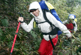 1月20日,參加“驢友節(jié)山地越野競技賽”的“驢友”在環(huán)西湖群山里跋涉。 1月19日至20日,來自上海、福建、河南、浙江等省市的40多家俱樂部的200余名戶外徒步旅行愛好者匯聚杭州,參加“2008首屆中國驢友節(jié)”的系列活動!绑H友”取自“旅游”的諧音,是圈內(nèi)形容戶外運動者的專用詞。