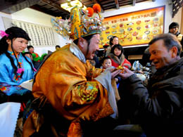 2月14日,是農(nóng)歷初八,山西平遙古城在春節(jié)期間推出“縣太爺拜年”、“財(cái)神爺賜福”等特色旅游表演,讓游客在欣賞平遙古城的同時(shí),體驗(yàn)晉商故里的濃情民俗,感受年文化的魅力,受到游客的歡迎。