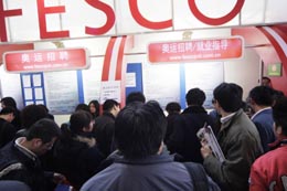 “招聘會(huì)第一天共收到簡歷1000份,第二天則翻倍增長,達(dá)到了2000份。簡直讓人不敢想象,”本次招聘會(huì)的主辦方之一——北京外企人力資源服務(wù)有限公司市場推廣經(jīng)理王若冰一邊梳理簡歷,一邊告訴記者。 據(jù)她介紹,應(yīng)聘的人從一開館就已經(jīng)排起了長長的隊(duì)伍,展臺(tái)被圍得水泄不通。招聘第一天,由于應(yīng)聘人員集中,館內(nèi)人流量多次飽和,工作人員不得不幾次暫停應(yīng)聘者入場限制流量。 記者了解到,此次招聘會(huì)在2號館首次設(shè)立了奧運(yùn)人才專館,包括奧運(yùn)供應(yīng)商、服務(wù)商所需人才,以及中國殘疾人奧林匹克運(yùn)動(dòng)基地所需服務(wù)人員等都在這里集中招聘,共60多家用人單位提供了700多個(gè)工作崗位。 記者看到,本次專場所設(shè)職位由于奧運(yùn)會(huì)的臨近而備受應(yīng)聘者的青睞。不少人認(rèn)為,能成為奧運(yùn)供應(yīng)商或服務(wù)商,肯定是發(fā)展較好、頗具前途的企業(yè),如果能在這樣的企業(yè)工作,會(huì)有更多的發(fā)展機(jī)會(huì)。 “如果這次應(yīng)聘成功,我會(huì)考慮辭掉現(xiàn)在的工作。”在排隊(duì)等候的時(shí)候,一位姓鐘的小姐告訴記者,“與奧運(yùn)相關(guān)的工作都要進(jìn)行嚴(yán)格的篩選,對各方面要求非常嚴(yán)格,很有挑戰(zhàn)性,是一個(gè)很好的鍛煉機(jī)會(huì)。這樣的工作經(jīng)驗(yàn)一定會(huì)大大提高我在以后求職時(shí)的成功率。”