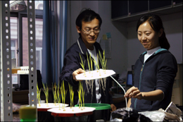 研究員在中國農(nóng)業(yè)大學(xué)進行無土栽培試驗。 |
