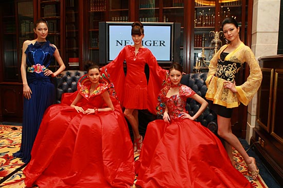 圖為莫萬(wàn)丹、熊黛林、戴小奕、周汶琦等名模在演繹NE·TIGER高級(jí)定制華服。 |