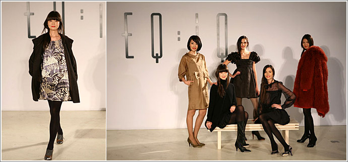 時尚品牌EQ:IQ日前在京上演了其2008秋冬系列時裝秀,并宣布該系列投放市場。 這一季EQ:IQ大膽使用了棕色、櫻桃紅、珊瑚紅、孔雀藍、苔蘚綠、茉莉黃等色調(diào),給08年秋冬帶來了豐富的色彩及濃濃的暖意。在圖案設(shè)計上,法國首席設(shè)計師Stéphanie