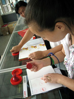 8月27日,北京奧運會閉幕三天后,幾位顧客正在郵局忙著補蓋各種有關北京奧運會的紀念郵戳和紀念章印,以收藏珍貴的奧運記憶。