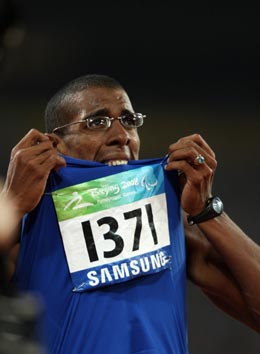 9月10日,古巴選手加拉諾在比賽后。當(dāng)日,在國家體育場進(jìn)行的北京2008年殘奧會男子400米T13級決賽中,加拉諾以49秒12的成績奪冠。