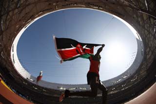 9月11日,肯尼亞選手亨利·基普羅諾·基魯瓦在獲得北京2008年殘奧會(huì)男子5000米T13級(jí)冠軍后,在“鳥巢”中激情狂奔。新華社記者:費(fèi)茂華 攝