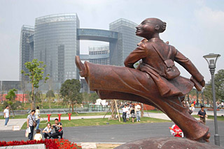 日前,2008中國杭州錢潮時刻·第三屆西湖國際雕塑邀請展在杭州錢江新城開展,吸引了不少市民前來觀展。新華社發(fā)(朱引煒