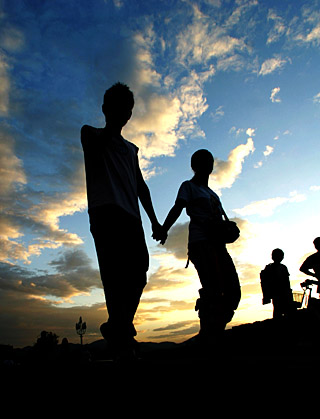 一對情侶在西湖斷橋上漫步。新華社發(fā)(趙小軍