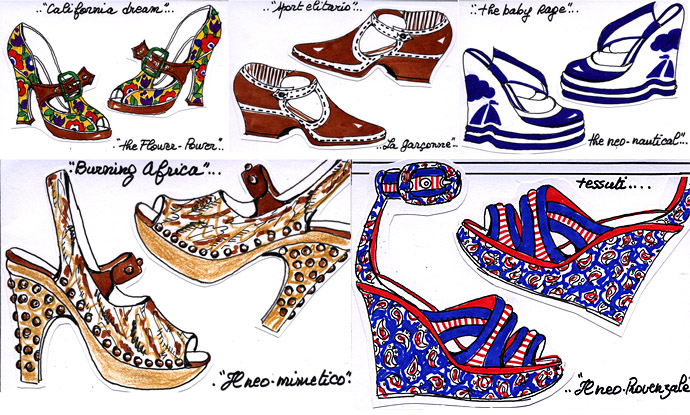 Premoli指出,鞋類流行趨勢將回歸到一個(gè)幽雅的、誘人的嬌柔狀態(tài)。保留著坡跟和平穩(wěn),但二者在形狀上加以結(jié)合并比過去要輕,非常完美地闡釋了古典嬌柔的風(fēng)格。但這些形狀需要重新設(shè)計(jì)以適合比例、材料和色彩效果。在外形裝飾上,通常使用珍珠和珍珠母,以減輕重量,便于成型。本季金屬色仍很重要但不再注重閃亮;復(fù)古風(fēng)在這一季表現(xiàn)得較為突出。前開口依然流行。在這一季里,運(yùn)動(dòng)鞋將呈現(xiàn)更為雅致的風(fēng)格。運(yùn)動(dòng)裝束卻從不是為了運(yùn)動(dòng),只為舒適又很奢華。面料以皮革和織物為主,裝飾以帶子和格子織物式樣。寬跟設(shè)計(jì)更體現(xiàn)其舒適性。