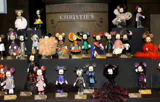 為慶祝迪斯尼動(dòng)畫(huà)公司創(chuàng)作的“米老鼠”問(wèn)世80周年,巴黎舉辦迪斯尼小玩偶義賣(mài)活動(dòng),由80名時(shí)裝設(shè)計(jì)師設(shè)計(jì)的80個(gè)形態(tài)、服飾迥異的“米老鼠”小玩偶被展示、拍賣(mài),用于慈善事業(yè)。