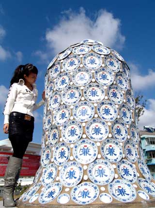 11月4日,一名女孩在江西景德鎮(zhèn)市珠山區(qū)廉政文化主題公園——德馨園觀看百“廉”瓷鐘。這座瓷鐘在外部鑲嵌了126件青花“廉”字瓷盤,寓意警鐘長鳴。