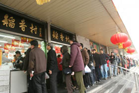 每逢元宵、端午和中秋,許多老北京都講究到稻香村買上點兒元宵、粽子或月餅,而稻香村門店前蜿蜒排起的長龍也是京城節(jié)日一景。雖然是北京的百年老號,稻香村主營的卻是南味食品,而且在競爭激烈的京城食界“百年不老”,個中緣由頗耐人尋味。