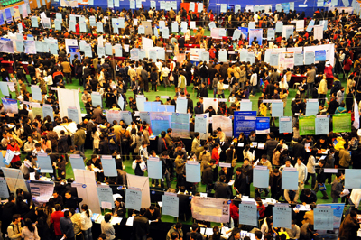 “我不在招聘會(huì)上,就在去招聘會(huì)的路上”——一位忙于求職的大四學(xué)生如此調(diào)侃自己的生存狀態(tài)。對(duì)于全國各大高校即將畢業(yè)的學(xué)子來說,最后一個(gè)學(xué)年除了為學(xué)位和學(xué)歷證書最后拼搏的課業(yè)外,其余的時(shí)間幾乎都用在“找未來”上了。 他們或是準(zhǔn)備考研或出國留學(xué),為當(dāng)前的就業(yè)壓力找一個(gè)暫時(shí)的緩沖;或是找工作,繼續(xù)把當(dāng)公務(wù)員或進(jìn)入比較穩(wěn)定的國企作為首選;或是在“待業(yè)”“創(chuàng)業(yè)”中,不斷尋覓適合自己的就業(yè)機(jī)會(huì)…… 今年國家確定的征兵對(duì)象主體為應(yīng)屆高校畢業(yè)生的政策,也吸引了不少學(xué)生。11月1日,四川冬季征兵第一天,全省就有5萬多名適齡青年報(bào)名參軍,其中大專以上畢業(yè)生占到30%至40%。 公務(wù)員招考從來沒有像今年這樣“燙手”——這是國家公務(wù)員局一位負(fù)責(zé)人的感受。統(tǒng)計(jì)顯示,2009年國家公務(wù)員考試通過審核的報(bào)名人數(shù)創(chuàng)紀(jì)錄地接近80萬人,各職位平均競爭比例接近60比1。 “我知道考取的希望不大,可還是想試一試!比A中科技大學(xué)新聞系大四學(xué)生柯強(qiáng)說,他報(bào)考的某海關(guān)職位僅招3人,但報(bào)名結(jié)束后該職位通過審核的人數(shù)已達(dá)到1400余人,差不多是500選1。 面對(duì)激烈的競爭,不少大學(xué)畢業(yè)生感到焦慮。對(duì)此,一些專家認(rèn)為,在積極開拓未來的同時(shí),畢業(yè)生們也需要緩解心理壓力-- 北京大學(xué)教授岳昌君建議,大學(xué)生畢業(yè)生要擺正心態(tài),適當(dāng)降低預(yù)期,“畢竟在經(jīng)濟(jì)不景氣的時(shí)候,不可能一切如愿! “大學(xué)生沒有必要產(chǎn)生恐慌,最重要的是面對(duì)現(xiàn)實(shí),找準(zhǔn)定位!比珖瞬沤涣髦行闹魅嗡疽胬谡f。 事實(shí)上,不少學(xué)生在屢屢碰壁后也漸漸有了更加理性的判斷。南開大學(xué)一位姓隋的研究生說,面對(duì)求職高峰的到來,我們必須要意識(shí)到大學(xué)文憑不再是安身立命的金字招牌,客觀認(rèn)識(shí)和評(píng)價(jià)自身的素質(zhì)能力,保持積極自信的心態(tài),通過實(shí)踐不斷積蓄職場(chǎng)能量。