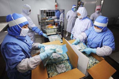 山東諸城外貿(mào)集團(tuán)的員工在包裝出口到荷蘭的熟制雞肉產(chǎn)品。近日,山東九家企業(yè)已恢復(fù)對歐盟國家出口熟制禽肉產(chǎn)品,這標(biāo)志著時隔六年后中國熟制禽肉產(chǎn)品開始重返歐盟市場。2002年,歐盟以進(jìn)口中國部分動物源性食品未達(dá)到其要求為由,全面禁止從中國進(jìn)口動物源性產(chǎn)品。經(jīng)國家和山東有關(guān)部門長期努力,歐盟委員會終于在前不久通過決議,批準(zhǔn)歐盟成員國恢復(fù)山東九家企業(yè)的熟制禽肉制品。 |