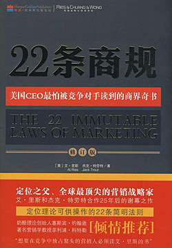作者:(美)里斯,(美)特勞特 著 出版社:山西人民出版社 如果說大衛(wèi)·奧格威的《一個廣告人的自白》是廣告界的“圣經(jīng)”,菲利普·科特勒的《市場營銷管理》是營銷界的“圣經(jīng)”,那么,里斯和特勞特先生合著的《定位》可以稱得上是營銷策劃界的“圣經(jīng)”。當(dāng)然,里斯和特勞特先生并不滿足于自己的理論成為說教式的教義。于是,在1993年,二人聯(lián)手將定位理論濃縮為能夠決定市場營銷勝敗的22條簡明法則——《22條商規(guī)》。 在這22條定律中,除了“品類定律”和“心智定律”外,里斯先生的遠(yuǎn)見更是在“犧牲定律”和“聚焦定律”中得到淋漓盡致的體現(xiàn)。雖然有人批評里斯先生,說他是這個星球上最堅決的“品牌泛化的反對者”。但是這么多年來,中外無數(shù)企業(yè)的興衰成敗不斷用事實證明著“智者的先知先覺”。修訂版的《22條商規(guī)》從多個角度為不同企業(yè)選擇營銷戰(zhàn)略提出了有益的建議。你會發(fā)現(xiàn):無論是市場領(lǐng)先者還是市場追隨者,都可以從中找到適合自己的營銷戰(zhàn)略。 |