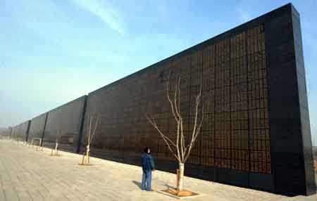 2月26日,一位年輕人在看地震紀(jì)念墻上的祭文。日前,河北省唐山市政府為更好地保護(hù)地震遺址,同時(shí)給廣大市民提供一個(gè)祭祀地震罹難者的場(chǎng)所,在建設(shè)中“唐山市地震遺址紀(jì)念公園”中建造的一座長約300多米,鐫刻上祭文和24萬罹難者姓名的地震紀(jì)念墻即將竣工。 1976年7月28日,河北唐山發(fā)生里氏7.8級(jí)地震,造成24萬人遇難。