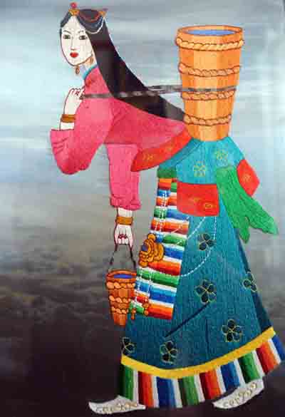 青海省海南藏族自治州貴南縣近年來(lái)弘揚(yáng)開(kāi)發(fā)藏族民間文化藝術(shù),扶持發(fā)展傳統(tǒng)藏繡產(chǎn)業(yè),成為當(dāng)?shù)夭刈遛r(nóng)牧民群眾尤其是藏族婦女的致富渠道。貴南傳統(tǒng)藏繡繡法獨(dú)特,繡品色彩艷麗、線(xiàn)條流暢,做工精美絕倫,具有很高的藝術(shù)觀(guān)賞價(jià)值和收藏價(jià)值。