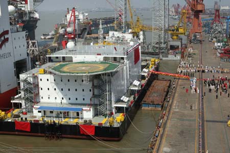 4月2日,由中遠(yuǎn)船務(wù)工程集團(tuán)有限公司為比利時(shí)一家企業(yè)設(shè)計(jì)建造的一艘大型海洋生活工作駁船在江蘇南通交付。這艘駁船屬海洋工程輔助服務(wù)船舶,長(zhǎng)120多米,型寬40多米,擁有可供350人居住的艙室以及柴油、飲用水等儲(chǔ)藏區(qū)間,并配備網(wǎng)絡(luò)、餐飲、娛樂等設(shè)施,將作為浮態(tài)旅館為海上油田服務(wù)。