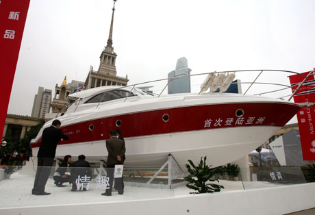 4月16日,為期4天的“2009中國(上海)國際游艇展”在上海展覽中心開幕,300余家海內(nèi)外展商參展,逾百艘實船亮相。圖為觀眾在參觀一艘法國豪華游艇。