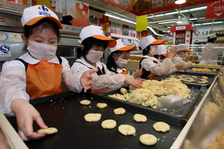 6月1日,無(wú)錫小朋友在超市里學(xué)習(xí)制作餅干。當(dāng)日,江蘇省無(wú)錫市僑誼幼兒園組織孩子們?cè)谝患页袑W(xué)做糕點(diǎn),了解食品制作過(guò)程和食品衛(wèi)生安全知識(shí),過(guò)一個(gè)不一樣的兒童節(jié)。