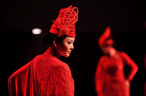 來自俄羅斯圖瓦共和國的模特在展示蒙古族現(xiàn)代時(shí)裝。