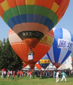 8月30日,第三屆中國(guó)(廊坊)國(guó)際熱氣球節(jié)在廊坊國(guó)際會(huì)展中心開(kāi)幕。本屆熱氣球節(jié)以“休閑廊坊、放飛夢(mèng)想”為主題,共有來(lái)自全國(guó)各地的20支熱氣球隊(duì)參加,期間還有氣球噴火、亮球、高空跳傘、動(dòng)力傘飛行表演以及熱氣球圖片展等活動(dòng)。