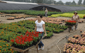 河北省廊坊市廣陽(yáng)區(qū)充分發(fā)揮比鄰北京的區(qū)位優(yōu)勢(shì),大力發(fā)展包括花卉產(chǎn)業(yè)在內(nèi)的特色農(nóng)業(yè)。“十一”國(guó)慶節(jié)來(lái)臨之際,廣陽(yáng)區(qū)生產(chǎn)的花卉產(chǎn)品大部分銷(xiāo)往北京。新華社發(fā)