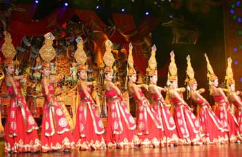 2009·亞洲藝術(shù)節(jié)氣勢(shì)磅礴的開(kāi)幕盛典———《吉祥草原祝福亞洲》,在童話般的東勝演藝中心拉開(kāi)帷幕。來(lái)自日本、孟加拉、尼泊爾、蒙古、新加坡等亞洲16個(gè)國(guó)家的文化部長(zhǎng)和代表,27個(gè)國(guó)家的駐華使節(jié)以及國(guó)內(nèi)外35個(gè)藝術(shù)團(tuán)體都置身于這如詩(shī)如畫(huà)的世界。
