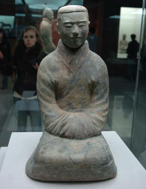 秦始皇兵馬俑發(fā)現(xiàn)35周年暨秦始皇兵馬俑博物館開(kāi)館30周年紀(jì)念大會(huì)10月10日在西安舉行。大會(huì)回顧了秦兵馬俑及博物館開(kāi)館以來(lái)在考古發(fā)掘、文物保護(hù)、陳列展示、科學(xué)研究的歷程,并舉辦秦始皇陵園出土文物精華展,展示116件(組)文物。這是展出的平常難得一見(jiàn)的秦陵跽坐俑。 |