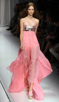 著名設(shè)計(jì)師迪安·馮菲爾斯滕貝格現(xiàn)任美國(guó)時(shí)裝設(shè)計(jì)師協(xié)會(huì)主席,她帶來了用珍珠和翡翠鑲邊的束胸上衣,以及用色豐富、充滿波西米亞風(fēng)情的長(zhǎng)裙。整場(chǎng)時(shí)裝秀融合了吉卜賽文化、印度文化和伊斯蘭文化,宛如沙漠里的夏季。