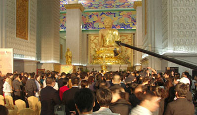 為了迎接新中國六十華誕,祈福和諧盛世,包括舍利真身寶塔磚雕在內(nèi)的千余件佛教稀世珍品與眾多世界頂尖的佛文化藝術(shù)大師亮相9月29日至10月30日舉辦的“中國法門寺首屆佛文化藝術(shù)展”。展覽囊括了法門寺佛教藝術(shù)珍品和海內(nèi)外多位知名佛文化藝術(shù)家的優(yōu)秀作品,凝聚了眾多藝術(shù)大家的畢生心血,如琉璃藝術(shù)家楊惠姍創(chuàng)作的“佛陀頭像”、“金佛手藥師琉璃光如來”、“亙古之敦煌”等百余件琉璃佛像作品,夏荊山書、畫、柜等不同形式佛教藝術(shù)作品50余件,姜奕先生的浮鎏唐卡作品1000余件。在眾多展覽作品中,絕大多數(shù)的藏品展品都是首次在國內(nèi)展出。其中包括更值得關(guān)注的舍利塔真身磚雕首展“福澤萬世”,法門寺供養(yǎng)佛祖真身的塔磚已有400年的歷史,經(jīng)有關(guān)部門批準,將部分塔磚精心敬造為佛祖和佛法世界之圣像、法器、念珠等,成為法門寺這一世界佛教珍寶家族的新成員。