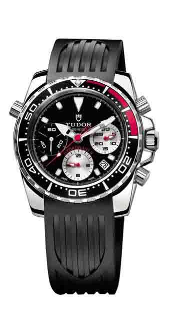 ▲帝舵表系列腕表增添了新成員——全新海洋王子型II多功能時(shí)計(jì)型。黑色的表盤(pán),黑色單向旋轉(zhuǎn)外圈,拋光表殼,搭配以帝舵表盾牌標(biāo)志及快艇船身的板紋為元素設(shè)計(jì)的黑色橡膠表帶,200米的防水深度對(duì)于普通消費(fèi)者來(lái)說(shuō)也是綽綽有余。