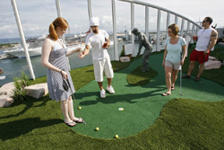 盡管“海洋綠洲”號(hào)的各種設(shè)施使乘客得以體驗(yàn)世界各地的休閑活動(dòng),但蒂姆認(rèn)為,在這艘巨輪上,人們恐怕難以體會(huì)到身在海上的感覺(jué)。 由于船體巨大,乘客往往在“海洋綠洲”號(hào)上轉(zhuǎn)悠好幾個(gè)小時(shí)也看不到大海。裝飾在船艙內(nèi)各處的大約7000幅藝術(shù)作品也鮮以海洋為表現(xiàn)對(duì)象,大多描繪沙漠、森林等陸上景象,似乎極力避免“提醒”乘客他們身在海上。 不過(guò),更能夠讓乘客誤以為身處陸地的,大概是游輪主甲板上的綠地公園。停靠在碼頭時(shí),“海洋綠洲”號(hào)看上去像一座公寓樓,但實(shí)際上,這座“公寓樓”中間是一個(gè)天井式的中央公園。公園內(nèi)栽種著大約1.2萬(wàn)株園景植物,四周由8層帶陽(yáng)臺(tái)的客房包圍。這意味著乘客足不出戶即可觀賞綠意,就像在自家陽(yáng)臺(tái)觀景一般。這一方面使乘客避免因海上旅途漫長(zhǎng)、空間封閉、景觀單調(diào)等原因患病,另一方面也使他們的注意力離開(kāi)船艙外的茫茫海洋,集中到船艙中央這片“人造陸地”上來(lái)。 皇家加勒比郵輪公司2008年舉辦了一場(chǎng)大約9萬(wàn)人參與的競(jìng)賽,為這艘巨輪征集名稱;蛟S正由于把綠意和海洋這兩種看似無(wú)關(guān)的元素完美融合,這艘巨輪最終獲稱“海洋綠洲”。 “海洋綠洲”號(hào)本月初從美國(guó)佛羅里達(dá)州勞德代爾堡大沼澤地港出發(fā),開(kāi)始它的處女航,目的地為海地。今后,這艘游輪將在勞德代爾堡、美屬維爾京群島首府夏洛特·阿馬里、荷屬安的列斯主要城市菲利普斯堡和巴哈馬國(guó)首都拿騷等城市港口間往返,以數(shù)百美元至上千美元不等的票價(jià),搭載乘客環(huán)游加勒比海。 不過(guò),既然“海洋綠洲”號(hào)本身已經(jīng)足以成為一個(gè)讓乘客盡興玩樂(lè)到忘記海洋的旅游目的地,它是否還需要在大海上作如此漫長(zhǎng)航行?面對(duì)媒體記者這一質(zhì)疑,皇家加勒比郵輪公司總裁理查德·費(fèi)恩解釋說(shuō),“海洋綠洲”號(hào)作為一艘輪船,如果不駛?cè)牒Q,僅停留在某個(gè)海灣內(nèi)供游客上船玩樂(lè),其意義恐怕不過(guò)是一座豪華海景酒店。