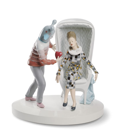 雅致新作Lladró夢幻系列之魔法時刻集夢幻與現(xiàn)實(shí)感于一身,詮釋了最坦率真摯的愛情姿態(tài)。同樣以JaimeHayón設(shè)計生涯中最具代表性的設(shè)計元素——Showtime扶手椅作為創(chuàng)作基礎(chǔ)。這款作品的設(shè)計非常精妙,一位曼妙的女郎坐在扶手椅上,愛情魔法師為了向女郎表達(dá)自己的愛意,將自己的心作為禮物獻(xiàn)給她。這件作品是整個Fantasy夢幻創(chuàng)品系列中的重點(diǎn)之作,完美地結(jié)合了Lladró與JaimeHayón的藝術(shù)風(fēng)格。 |
