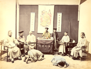 威廉·桑德斯的《法庭》。英國商業(yè)攝影師威廉·桑德斯1862-1887年在上海開設照相館,《法庭》是他安排模特“再現(xiàn)”中國社會的場景和風俗習慣,拍攝照片,用作商品銷售,是中國最早的將概念視覺化的攝影家。威廉·桑德斯拍攝的場景照和攝影室肖像是中國影像史上重要的藏品。目前中國市場上的參考價格為6000-10000元。
