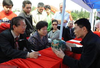 文物鑒定專家在為收藏者鑒寶。新華社記者