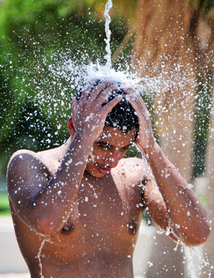 ▲進(jìn)入6月份以來,屬熱帶沙漠氣候的科威特氣溫持續(xù)攀升,全國最高氣溫曾達(dá)54攝氏度,刷新了該國1998年的51.3攝氏度的高溫紀(jì)錄。圖為一名男孩在科威特瑪麗娜海灘沖涼。記者