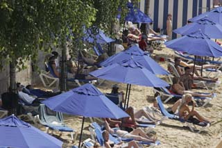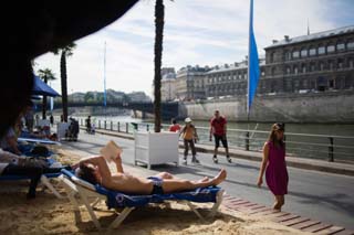 在夏日來到巴黎的塞納河畔,眼前是白色的細(xì)沙、一排排蔚藍(lán)的遮陽篷和躺椅、郁郁蔥蔥的棕櫚樹,這里儼然已經(jīng)成為一片真正的陽光沙灘。 這是巴黎市政府為供市民休閑娛樂特別推出的“巴黎沙灘”活動(dòng)。從2002年開始,巴黎市每年都會(huì)在盛夏來臨時(shí)在市區(qū)設(shè)置沙灘休閑娛樂設(shè)施,供大眾免費(fèi)享用。在今年度假潮到來之際,第九屆“巴黎沙灘”也如期而至,為巴黎市民和各國游客提供了一個(gè)休閑度假、享受陽光的好去處。 據(jù)介紹,“巴黎沙灘”活動(dòng)現(xiàn)場主要位于巴黎市政廳附近的塞納河畔以及巴黎19區(qū)一處水道旁,分別綿延2.8公里和1.5公里。主辦方在短短四天五夜間將運(yùn)來的1350噸細(xì)沙、250處日光浴、數(shù)百張折疊躺椅、聚餐桌椅、熱帶樹木等安置在河畔。不僅餐飲、娛樂、淋浴等項(xiàng)目一應(yīng)俱全,甚至還安裝了220平方米大的游泳池供游客消暑嬉戲。 在這里,人們可以遠(yuǎn)離喧囂、靜聽塞納的江聲,躺在細(xì)沙上度過休閑的時(shí)光,可以在沙灘上買到冰激凌、品到香濃的咖啡。主辦方還開設(shè)了圖書館為沙灘上的人提供書籍和雜志,人們可以邊“美黑”邊閱讀。另外還有水上健身課程、兒童科學(xué)小實(shí)驗(yàn)等項(xiàng)目供人們休閑娛樂。 一對在巴黎生活的德國老夫婦告訴記者,他們很喜歡“巴黎沙灘”。“去年我們就參加過,今年我們從開幕第一天就來了,還帶上野餐的食物在陽傘下品嘗。這非常有趣,太舒服了!” 一個(gè)可愛的法國小女孩很開心地對記者講述了她和爸爸、弟弟從早上來到“巴黎沙灘”的游玩經(jīng)歷:“雖然玩滾球游戲總是爸爸贏,弟弟喜歡潑沙子,但是我還是很喜歡到這里嬉戲、曬太陽! 活動(dòng)負(fù)責(zé)人DamienMasset接受記者采訪時(shí)表示,他的工作團(tuán)隊(duì)負(fù)責(zé)整個(gè)活動(dòng)的每一個(gè)細(xì)節(jié),包括沙子、日光浴、樹木、餐飲以及音樂、舞蹈等文化活動(dòng)都完美地運(yùn)行。活動(dòng)最初是為夏日還沒到南部海灘度假的巴黎人而設(shè)的,在這里他們也能愜意享受到陽光和沙灘。而漸漸該活動(dòng)成了巴黎夏日一道獨(dú)特的風(fēng)景線,加入了許多外國游客夏天巴黎游的必經(jīng)線路。 今年的“巴黎沙灘”耗資220萬歐元,除了大量物資投入外,主辦方派出了650名救生員,自開幕之日起至8月20日結(jié)束全程保護(hù)游客的安全。 |