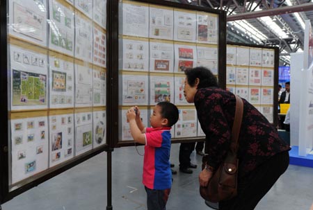 集郵是老少咸宜的收藏活動(dòng),祖孫倆在觀看集郵展。新華社