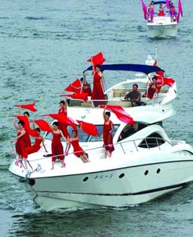 浙江省淳安縣推出一項政策,鼓勵中高檔游艇落戶千島湖。雖然尚在籌建階段,但此舉引起各方關(guān)注。有人批評,如此為富人服務(wù),是政府行政錯位的體現(xiàn);此舉將大大侵占千島湖作為國家風景旅游區(qū)的公眾資源,并給水域帶來污染。圖為千島湖國際游艇展上的“游艇模特秀”。