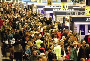 12月21日,大量旅客滯留在希斯羅機(jī)場(chǎng)。由于倫敦遭遇大霧,英國(guó)航空公司已取消了從該機(jī)場(chǎng)起飛的約180個(gè)航班。CFP供圖 |