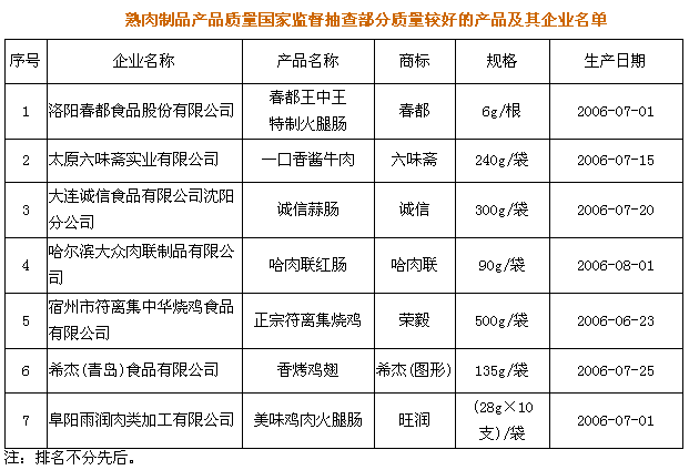 國家質檢總局日前組織對熟肉制品產品質量進行了國家監(jiān)督抽查。共抽查了北京、天津、河北、山西、遼寧、黑龍江、山東、上海、江蘇、浙江、安徽、福建、江西、河南、湖北、湖南、廣東等17個省、直轄市103家企業(yè)生產的125種產品,產品抽樣合格率為80%。