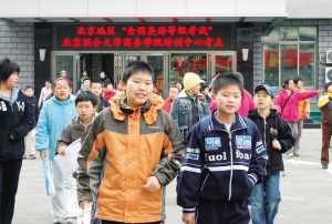 3月24日至25日,是2007年全國(guó)英語(yǔ)等級(jí)考試上半年考試的日子。24日早上7點(diǎn)半,記者來(lái)到北京聯(lián)合大學(xué)商務(wù)學(xué)院培訓(xùn)中心考點(diǎn)。雖然9點(diǎn)才開(kāi)考,但已有考生陸續(xù)到來(lái),記者看到考生大多是10歲左右的孩子,在家長(zhǎng)的陪同下來(lái)參加考試,考場(chǎng)前的校園的空地被家長(zhǎng)們圍得水泄不通。檢驗(yàn)考試證件的監(jiān)考老師告訴記者,該考點(diǎn)小學(xué)生考生占了80%以上,還有一些中學(xué)生。 上小學(xué)四年級(jí)的劉超告訴記者,他參加的是二級(jí)考試。他從小學(xué)一年級(jí)起就開(kāi)始學(xué)習(xí)英語(yǔ)了,參加公英考試是父母的意思。他抱怨地說(shuō):“整天都在學(xué)習(xí),根本沒(méi)有時(shí)間玩”。 小學(xué)三年級(jí)的朱雅麗也是參加二級(jí)考試的,這已是她第二次參加二級(jí)考試了。她對(duì)記者說(shuō),除了平常的上學(xué),她要額外學(xué)習(xí)公共英語(yǔ)和奧數(shù),還要每天彈鋼琴。她說(shuō)考試內(nèi)容有些看不懂,只好用輔導(dǎo)班學(xué)到的一些技巧答題。她也不想學(xué),但媽媽說(shuō),考重點(diǎn)中學(xué),沒(méi)有英語(yǔ)等級(jí)證,連參加考試的資格也沒(méi)有,只好硬著頭皮學(xué)了。 10點(diǎn)半左右,臨近考試結(jié)束,記者又趕到北京市財(cái)經(jīng)學(xué)校考點(diǎn),同樣看到考生中大多為小學(xué)生。記者電話采訪了北京市教育考試指導(dǎo)中心,考試科的王老師告訴記者,這次北京報(bào)名參加3月份考試的有4.8萬(wàn)人左右,其中小學(xué)生考生至少在一半以上。她說(shuō),近來(lái)小學(xué)生考生呈現(xiàn)快速增長(zhǎng)的勢(shì)頭,在所有考生中所占的比例越來(lái)越大,報(bào)考的級(jí)別也越來(lái)越高。