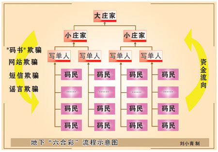 張曉明是修水縣一家國有企業(yè)的下崗工人,為了實(shí)現(xiàn)“發(fā)財(cái)夢(mèng)”,2004年在朋友的慫恿下,花了20元錢“買碼”,沒想到轉(zhuǎn)眼竟翻了40倍。第一次的“成功”讓張曉明欣喜若狂。 “從這以后,我就像中了邪一樣,直到把家里僅有的1萬多元錢都賠進(jìn)去為止!保玻埃埃的辏焉頍o分文的張曉明通過朋友介紹,開始為莊家“寫單”,從其他“碼民”身上賺取手續(xù)費(fèi)。 “‘十賭九歸莊’,地下‘六合彩’實(shí)質(zhì)上是騙局!敝钡綖椤扒f家”寫單后,張曉明才慢慢明白了其中的“奧秘”。張曉明說,“碼民”買碼分買“單雙”、“生肖”、“大小”等六七種方式,但無論你怎么買,“碼民”的錢最終會(huì)進(jìn)“莊家”腰包。 “一旦有人中獎(jiǎng),莊家就會(huì)大肆宣揚(yáng),極力鼓動(dòng)別人‘買碼’,而絕大多數(shù)虧得血本無歸的人,只好打落門牙往肚里咽!睆垥悦髡f,每一期“六合彩”