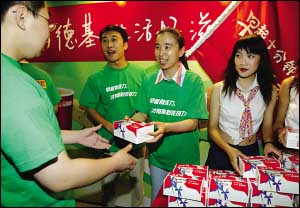 昨天(23日)早晨,天恒大廈里舉行了一場登樓活動,活動后近百名白領(lǐng)享受了一頓美味的肯德基早餐。登樓活動還將在全國十多個城市展開。目前,全國已有80余座城市的千余家肯德基餐廳提供早餐服務(wù),早餐長期產(chǎn)品有16種。