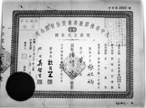 據(jù)有關(guān)專業(yè)人土介紹,我國最早的股票發(fā)行比我國最早的郵票還要早5年。第一張股票發(fā)行于清末的1872年,即李鴻章創(chuàng)辦的“輪船招商局”股票。由于發(fā)行時間早,能夠保留至今的好品相早期股票己寥寥無幾,導(dǎo)致價(jià)格大幅飆升。一張清光緒七年發(fā)行的“開平礦務(wù)局”股票,現(xiàn)市價(jià)大約為11萬元;一張清宣統(tǒng)三年發(fā)行的“津浦殖業(yè)銀行”股票目前的“出讓”價(jià)己達(dá)到了100萬元的天價(jià)。 收藏者邱先生認(rèn)為:我國清朝、民國時期發(fā)行的股票總共有1萬余種,而目前只挖掘出700余種,尚不足其中的1/10。因此,早期股票還需要一個很長的挖掘過程,而這個過程同時也是一個收藏、史料價(jià)值和文物價(jià)值的挖掘過程。