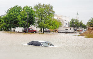 6月7日,在阿曼首都馬斯喀特,一輛汽車被洪水淹沒。據(jù)阿曼電視臺當(dāng)天報道,已有12人被證實在阿曼東海岸地區(qū)的熱帶風(fēng)暴“古努”的襲擊中死亡。