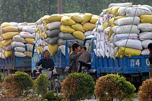 攝 | 記者在江蘇省鹽城市射陽(yáng)縣通洋鎮(zhèn)的國(guó)家糧食儲(chǔ)備庫(kù)前看到,糧庫(kù)前排起了長(zhǎng)長(zhǎng)的農(nóng)用拖拉機(jī)隊(duì)伍,車上滿載著小麥。一輛輛運(yùn)送小麥前來銷售的拖拉機(jī)正從四面八方不斷涌來。在糧庫(kù)大院內(nèi),運(yùn)糧的拖拉機(jī)通過地磅稱重后駛向四個(gè)不同的小麥倉(cāng)庫(kù),質(zhì)檢人員化驗(yàn)后,小麥即收購(gòu)入倉(cāng)。 剛剛領(lǐng)到賣糧錢的通洋鎮(zhèn)大陸村農(nóng)民陳德雨急忙數(shù)起錢來。作為糧食經(jīng)紀(jì)人,40歲的陳德雨目前主要是到農(nóng)民家里或田間收購(gòu)小麥,然后運(yùn)到糧庫(kù)銷售,賺取每公斤五六分錢的差價(jià)!爸饕琴崅(gè)油錢和辛苦錢”,陳德雨告訴記者,從農(nóng)民手中收購(gòu)小麥價(jià)格在1.32元/公斤到1.34元/公斤,賣到糧庫(kù)價(jià)格一般為1.38元/公斤,有時(shí)還要扣除0.5公斤/50公斤的雜質(zhì)和水分,和外出打工收入差不多,主要是能照顧家庭。 正在賣糧的通洋鎮(zhèn)農(nóng)民樓大偉認(rèn)為,1.38元/公斤的托市收購(gòu)價(jià)比較合理,由于種田免稅,加上糧食補(bǔ)貼20元,農(nóng)民種糧還有一點(diǎn)賺頭。 記者注意到,目前,種糧農(nóng)民親自到糧庫(kù)賣糧的很少,中青年基本上都外出打工了,家里的老人孩子和婦女沒有力氣,搬不動(dòng)糧食,糧食收購(gòu)主要靠農(nóng)民經(jīng)紀(jì)人。 今年江蘇省小麥種植面積約3200萬畝,總產(chǎn)約110億公斤,較去年略增,又是一個(gè)豐收之年。中國(guó)農(nóng)業(yè)發(fā)展銀行江蘇省分行預(yù)計(jì),全省小麥的商品量約為88億公斤,計(jì)劃投入貸款130億元,較去年增加10億元。 6月1日后,全省各地糧庫(kù)已陸續(xù)開門收購(gòu),價(jià)格按照國(guó)家托市收購(gòu)價(jià)1.38元/公斤至1.44元/公斤進(jìn)行收購(gòu)。 雖然夏糧收購(gòu)目前尚進(jìn)展順利,但一些地方面臨的困難亟需盡快解決,否則將影響夏糧收購(gòu)的進(jìn)度。 一是中儲(chǔ)糧確定的具有資質(zhì)的小麥?zhǔn)召?gòu)企業(yè)和庫(kù)點(diǎn)少。 射陽(yáng)縣糧食局副局長(zhǎng)王少群說,2006年,中儲(chǔ)糧和農(nóng)發(fā)行在射陽(yáng)全縣確定了17家糧管所和24個(gè)庫(kù)點(diǎn)進(jìn)行收購(gòu),基本上保證了糧食收購(gòu)的正常進(jìn)行。但是今年僅確定了11個(gè)糧管所和15家?guī)禳c(diǎn),好幾個(gè)鄉(xiāng)鎮(zhèn)沒有收購(gòu)庫(kù)點(diǎn),當(dāng)?shù)剞r(nóng)民將面臨“賣糧難”問題,農(nóng)民意見很大,希望中儲(chǔ)糧能增加收購(gòu)點(diǎn)。 中儲(chǔ)糧在糧食大縣東?h只確定了17個(gè)庫(kù)點(diǎn),遠(yuǎn)遠(yuǎn)不能滿足農(nóng)民賣糧需求。糧食局長(zhǎng)劉海波說,東海已將第二批收購(gòu)點(diǎn)上報(bào)了中儲(chǔ)糧,但至6月14日還沒有批下來。 二是庫(kù)容不足,打露天囤亟待中儲(chǔ)糧和農(nóng)發(fā)行盡快批準(zhǔn)。 射陽(yáng)縣種植小麥60萬畝,總產(chǎn)在23萬噸左右,預(yù)計(jì)收購(gòu)量在18萬噸左右,比去年約增加1萬噸。但是,目前,全縣糧食庫(kù)容僅有13萬噸,由于大部分糧庫(kù)老化,個(gè)別倉(cāng)庫(kù)又存放著其它糧食,全縣庫(kù)容缺口有5萬噸左右。東海縣雖然倉(cāng)容充足,但許多倉(cāng)庫(kù)老化,儲(chǔ)糧存在質(zhì)量安全的擔(dān)憂。 由于小麥?zhǔn)召?gòu)期緊,緊急收購(gòu)時(shí)間只有十余天,如果一旦因倉(cāng)庫(kù)問題而停止收購(gòu),將出現(xiàn)農(nóng)民“賣糧難”。當(dāng)前射陽(yáng)需要中儲(chǔ)糧和農(nóng)發(fā)行緊急批準(zhǔn)打“露天糧囤”,以解決庫(kù)容不足難題。 三是要盡快提前發(fā)放貸款,防止糧款“斷錢”引起農(nóng)民“賣糧難”。 雖然農(nóng)發(fā)行準(zhǔn)備充足,但由于今年夏糧收購(gòu)較往年提早10天左右,而且實(shí)行小麥托市收購(gòu),中儲(chǔ)糧對(duì)收購(gòu)企業(yè)的資格審查十分嚴(yán)格,雖然農(nóng)發(fā)行提前發(fā)放了部分資金,但基層仍表示貸款速度比小麥?zhǔn)召?gòu)進(jìn)度慢,資金緊張。