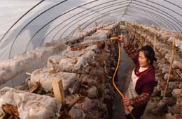 一名農(nóng)民正在溫室大棚內(nèi)給食用菌施肥。 | 國(guó)家戰(zhàn)略:打造中西部首家綜合配套改革試驗(yàn)區(qū)